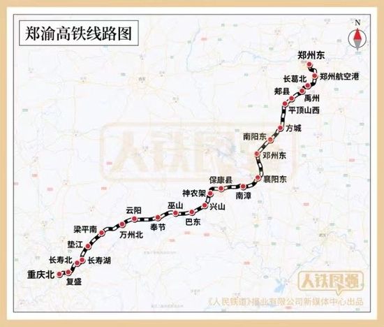 鄭渝高鐵北起河南省鄭州市,南至重慶市,途經(jīng)河南、湖北、重慶三省市,全長(zhǎng)1068公里,其中,重慶北至萬州北段、鄭州東至襄陽東段已于2016年和2019年開通。鄭渝高鐵全線開通運(yùn)營(yíng)后,重慶至鄭州最快4小時(shí)可達(dá),同時(shí)大大縮短了重慶到達(dá)北京、武漢等城市的時(shí)長(zhǎng),有效提升重慶鐵路通道北上、東出能力,有助于發(fā)揮重慶作為一帶一路”和長(zhǎng)江經(jīng)濟(jì)帶聯(lián)結(jié)點(diǎn)的戰(zhàn)略定位。
