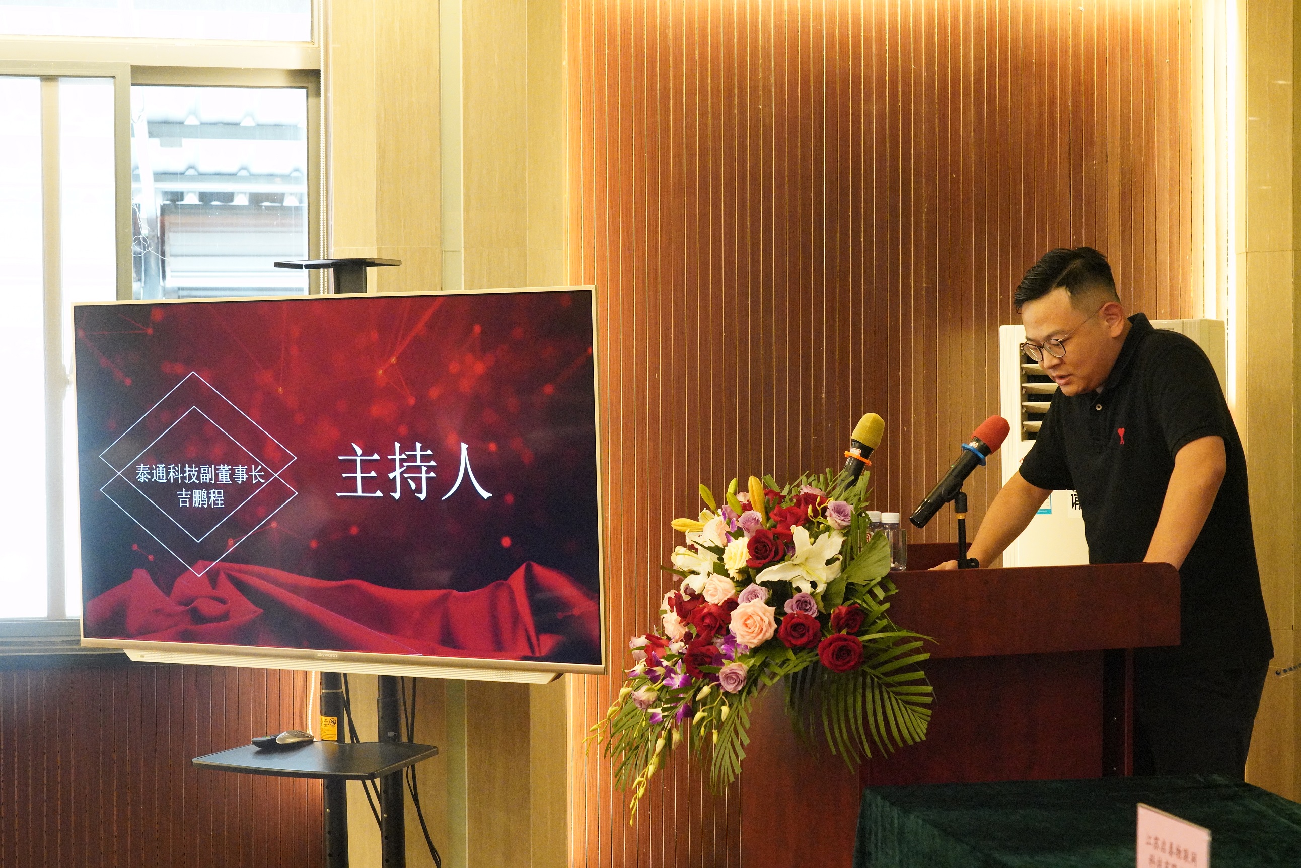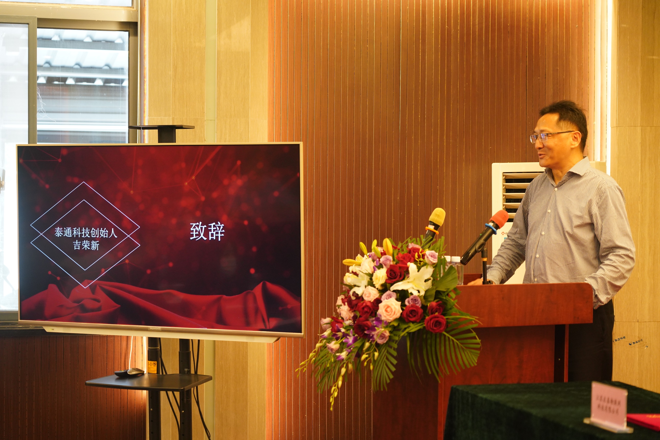 下午兩點三十分許,創(chuàng)始人吉榮新、泰通科技董事長陳建平等公司領(lǐng)導(dǎo)陪同與會嘉賓共同步入會場,在泰通科技副董事長吉鵬程的宣布下揭牌儀式正式開始。